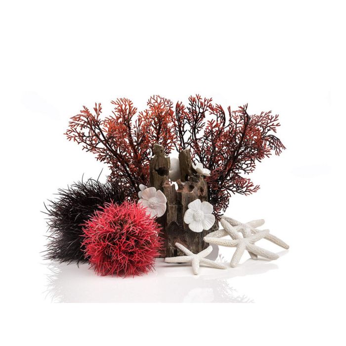Contains: 1x Flowers on Wood Sculpture Small, 2 Crimson Sea Fans, 1x Black Sea Lilly, 1x red Colour Ball and 1 White Star Fish set.
