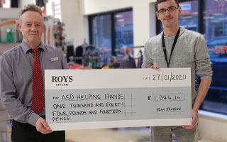 Donations are made into our charity fund based on the sales of selected grocery products as indicated in our leaflets. Roys then donate money from this fund to local charities and good causes.