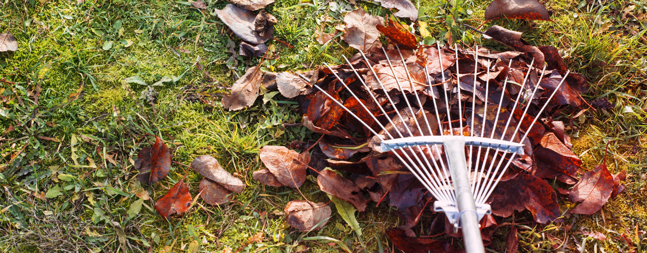 Remove any fallen leaves by raking out or mowing with a high cutting setting so the leaves pass under mower and are sucked up and chopped ready for composting