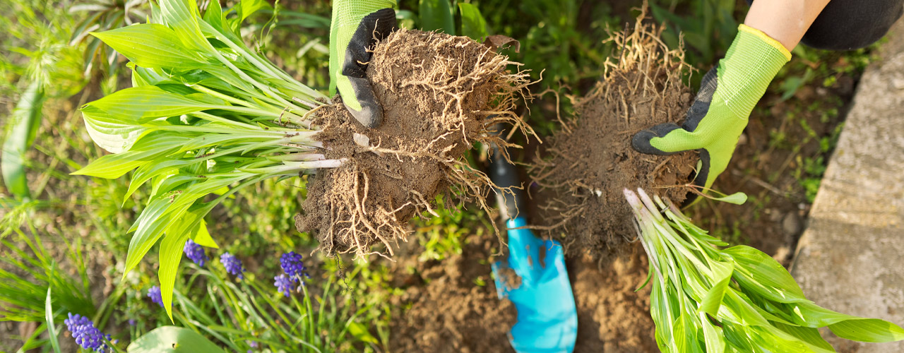 Gently fork out a clump of your chosen plant and shake off the excess soil